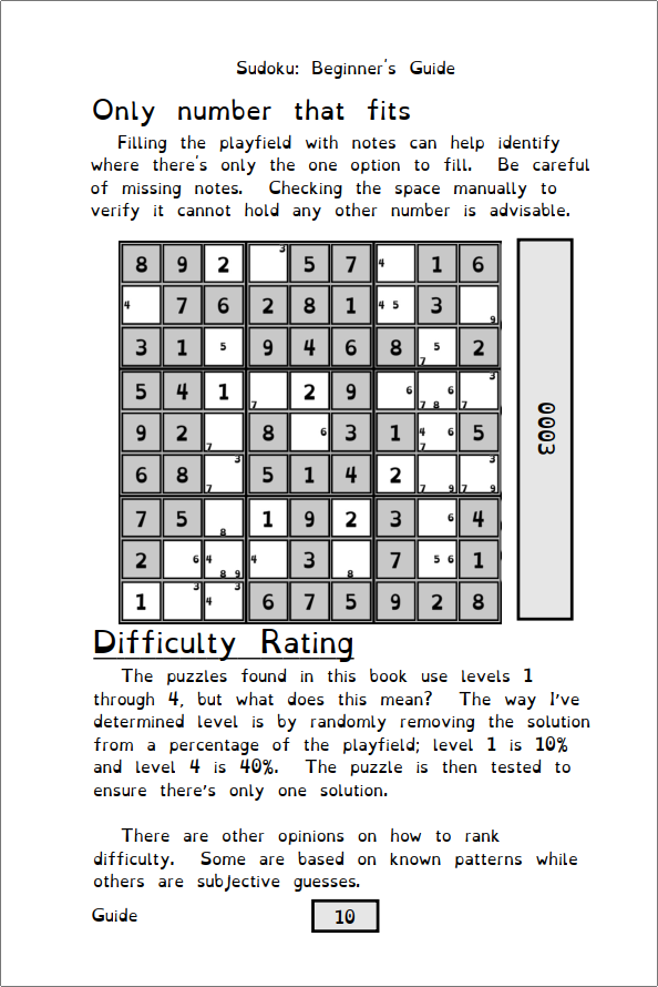 An easy to follow starter guide to comfortably begin with Sudoku. Start off going over the rules and some tips before working through two hundred and seventy-one puzzles (3 guide; 8 level-1; 60 level-2; 100 level-3; 100 level-4) across four difficulty levels.